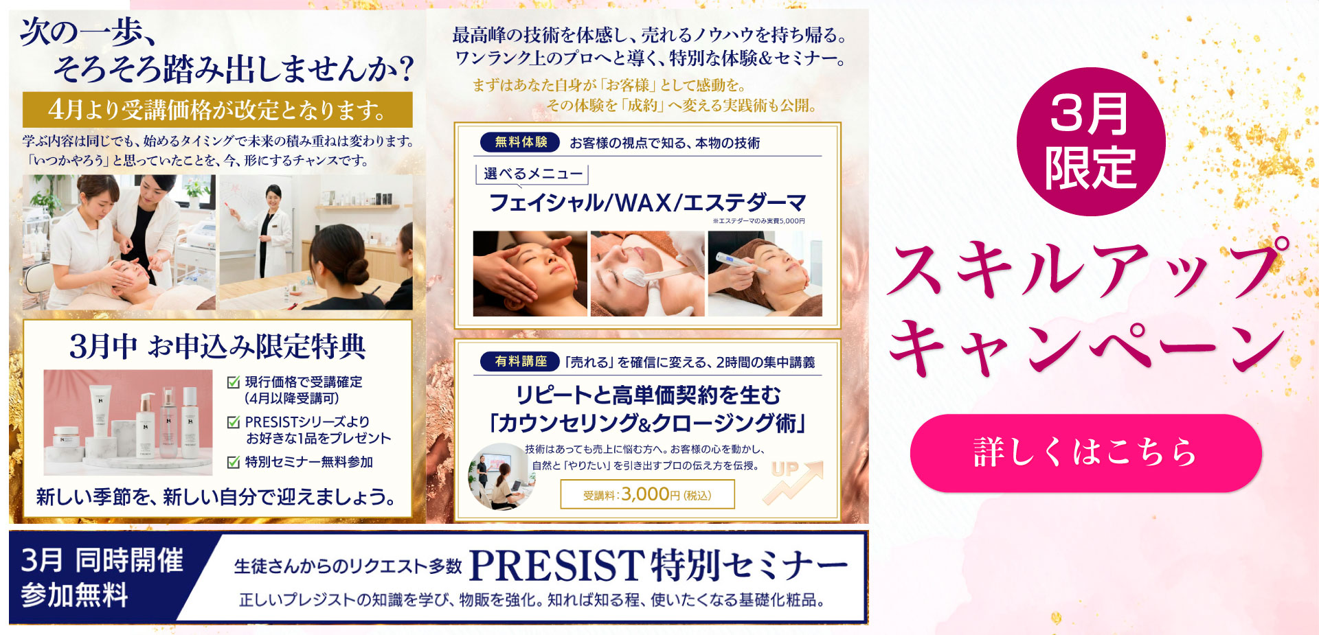 未経験者は勿論のこと、エステサロンに就職したけれど、肌の知識をもっと学びたい、